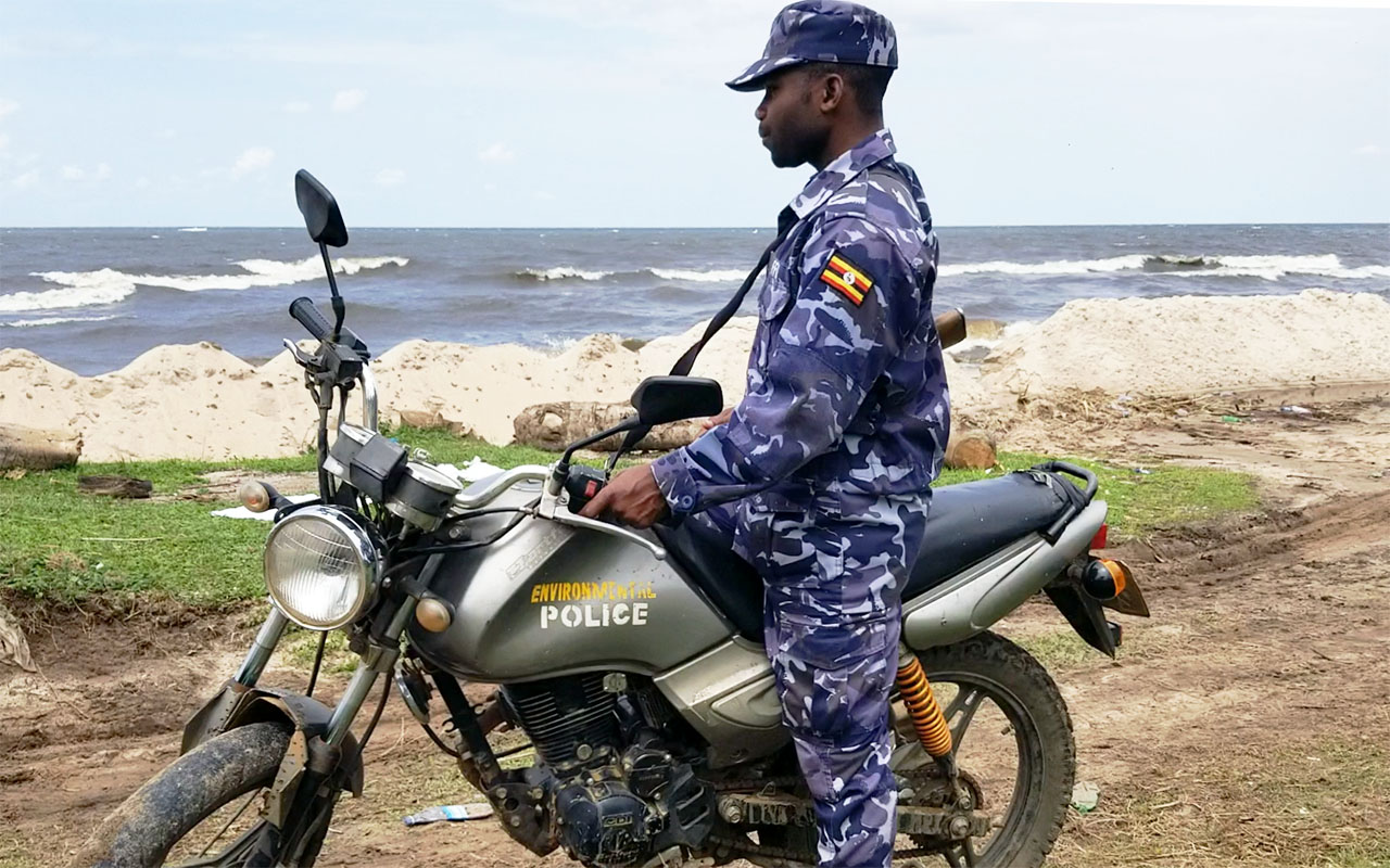 One of the environment policemen at an illegal sand mining site on the shores of Lake Victoria in Bukakkata Sub-County, Masaka District on June 25, 2024. PHOTO/ISSA ALIGA